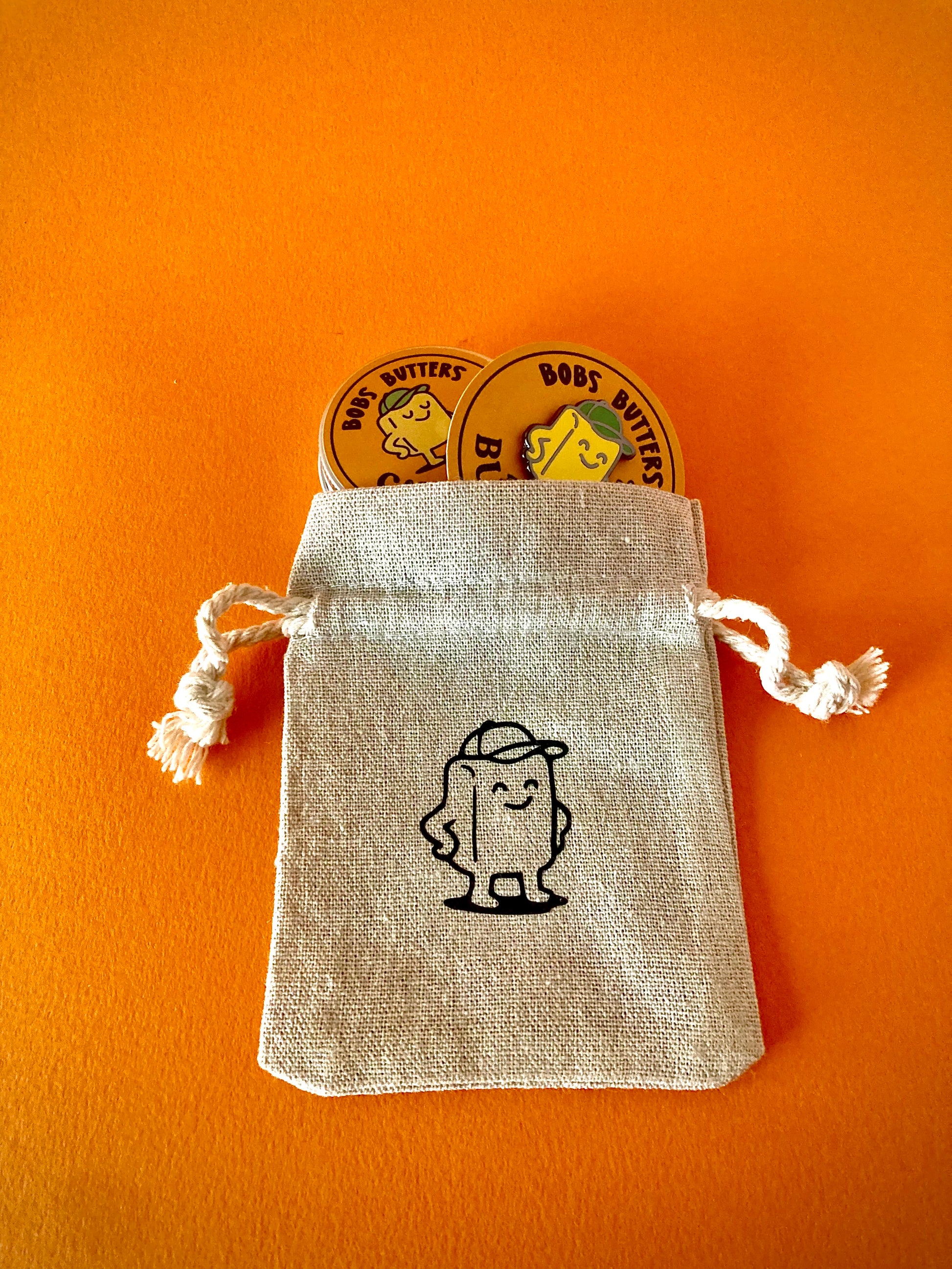 Grab a tin of your favourite balm and combine it with a Butterman pin, all contained within a cute custom Bobs Butters cotton bag. Perfect for gifting, or just keep it all for yourself!